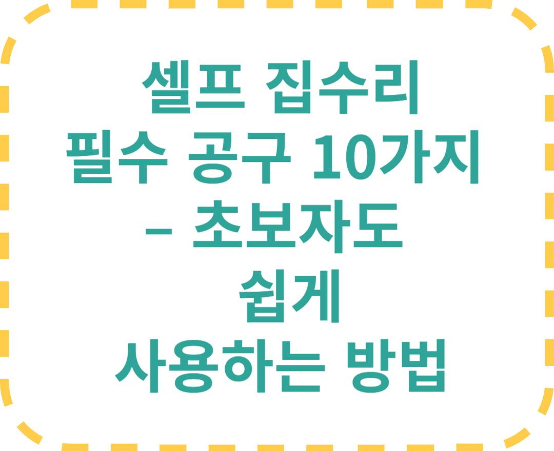 셀프 집수리는 생각보다 어렵지 않습니다. 위에서 소개한 **필수 공구 10가지만 준비하면, 누구나 쉽게 DIY 작업을 시작할 수 있어요.**