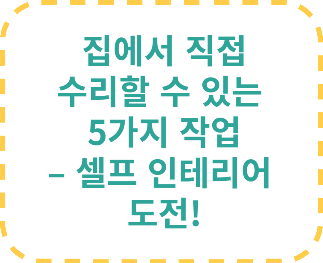 셀프 집수리는 **비용을 절약하고 집을 더욱 아늑하게 꾸밀 수 있는 방법**입니다. 이번에 소개한 5가지 작업은 **초보자도 도전할 수 있는 쉬운 DIY 작업**이니, 오늘부터 하나씩 도전해보세요!