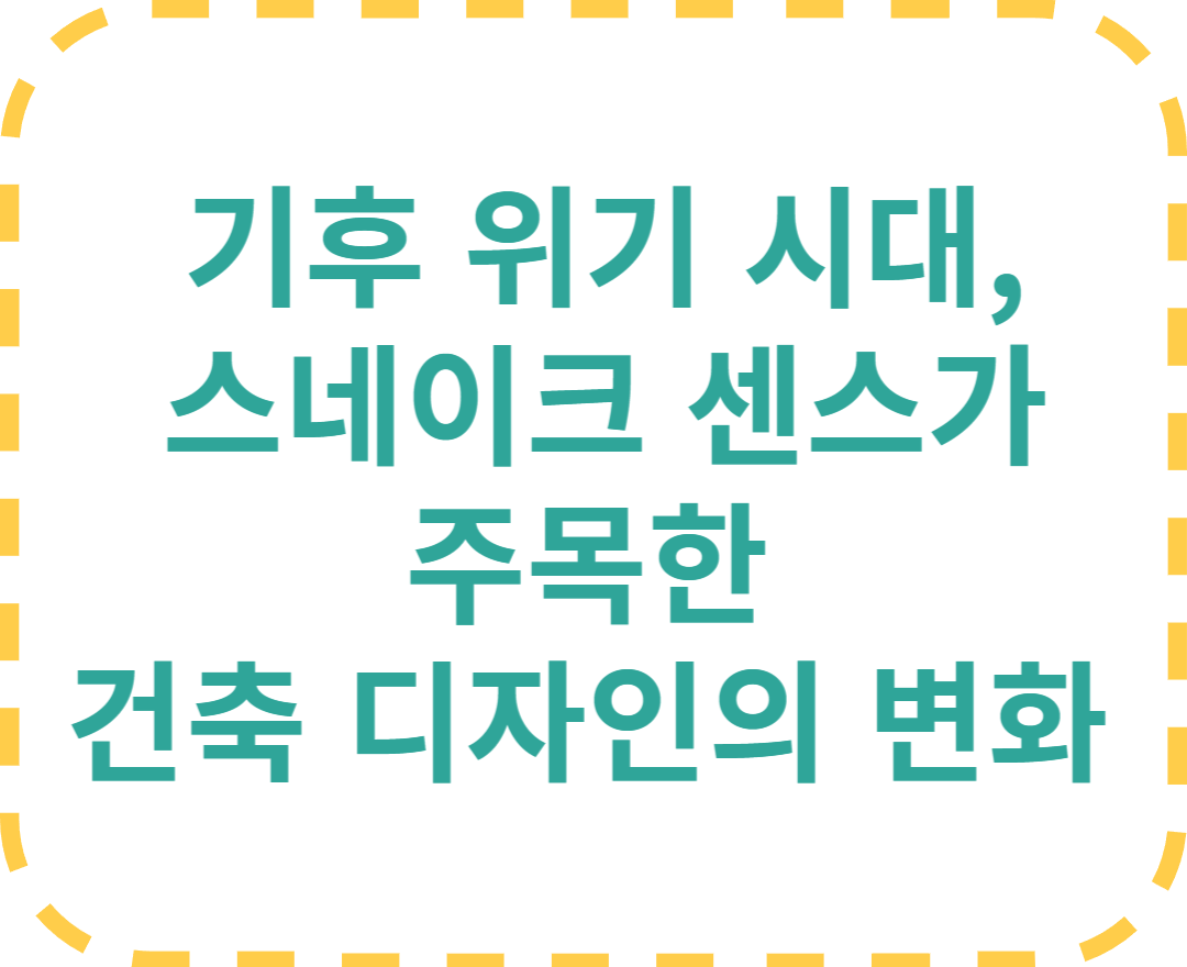 2025년형 소비자, 즉 스네이크 센스(S.N.A.K.E Sense)는 건축과 인테리어에서도 ‘기후 대응’을 핵심 가치로 삼고 있습니다. 이번 글에서는 스네이크 센스 소비자가 선택하는 새로운 건축 디자인의 흐름을 소개합니다.