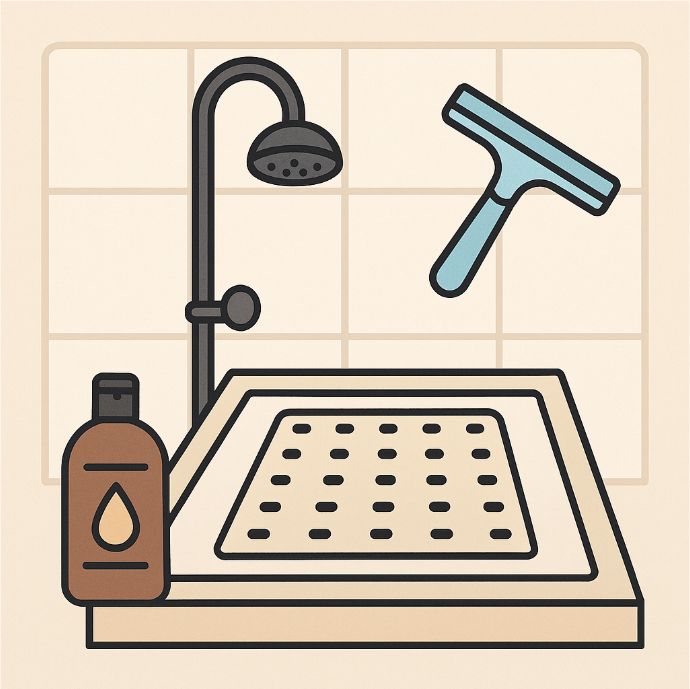 - 샤워실 바닥을 완전히 건조시킨 후, 알콜로 표면을 닦아 기름기를 제거합니다.