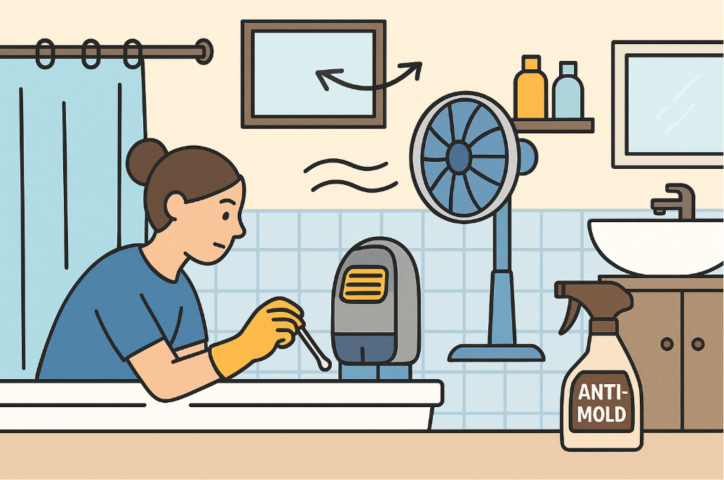 - 환기팬이 없으면 선풍기나 휴대용 제습기로 대체 가능