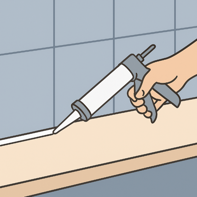 - 4단계 - 실리콘 도포: 실리콘 건을 사용해 천천히 일정한 압력으로 실리콘을 짜며 채워줍니다.